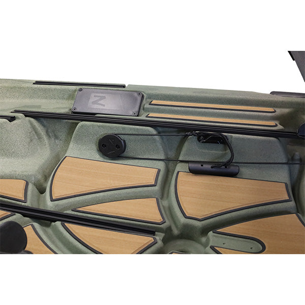 NuCanoe QuickConnect Mounting System Installation Kits for NuCanoe EPS Trolling Motors come in hand and foot steer varieties based on your preferences. The hand steer kits come with a lever that attaches to the gunwale of the kayak whereas the foot steer kits come with foot pedals that attach to the footwell of the kayak.